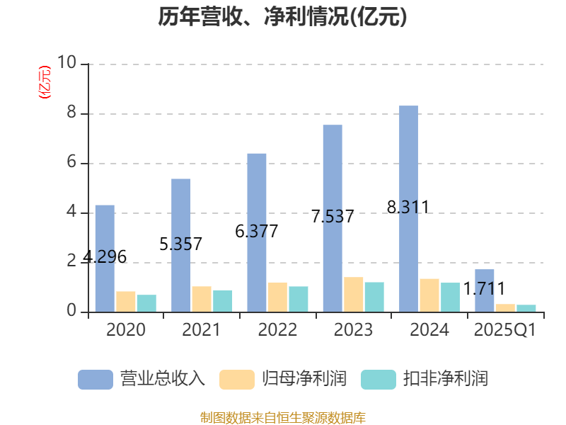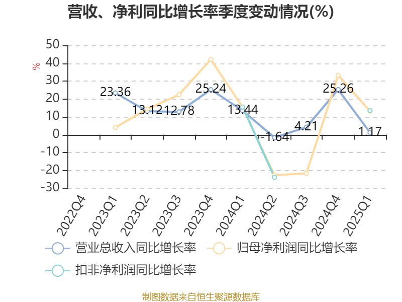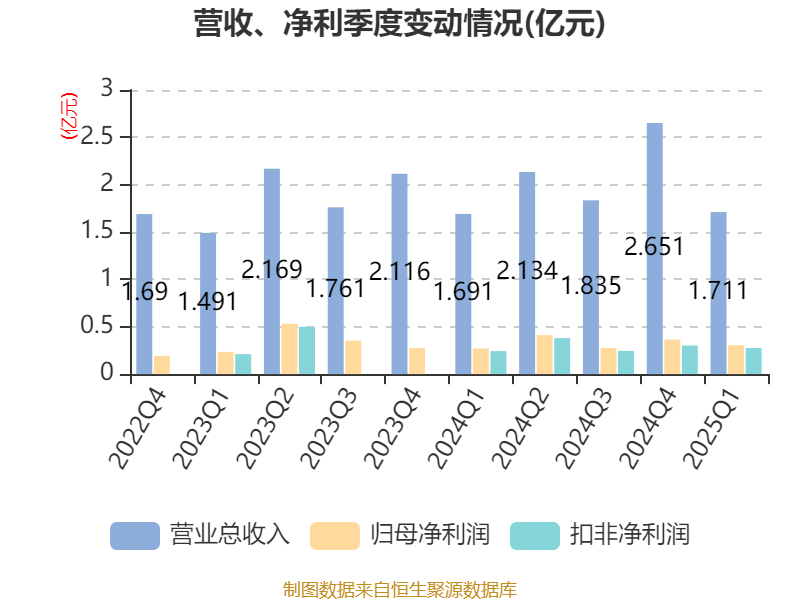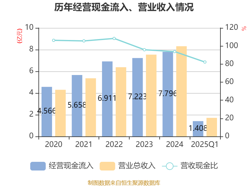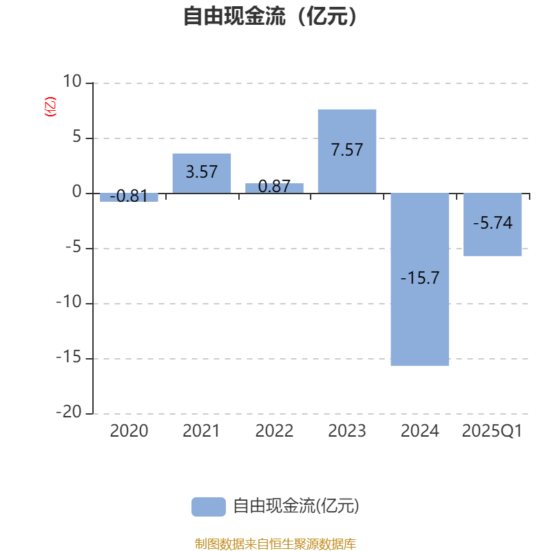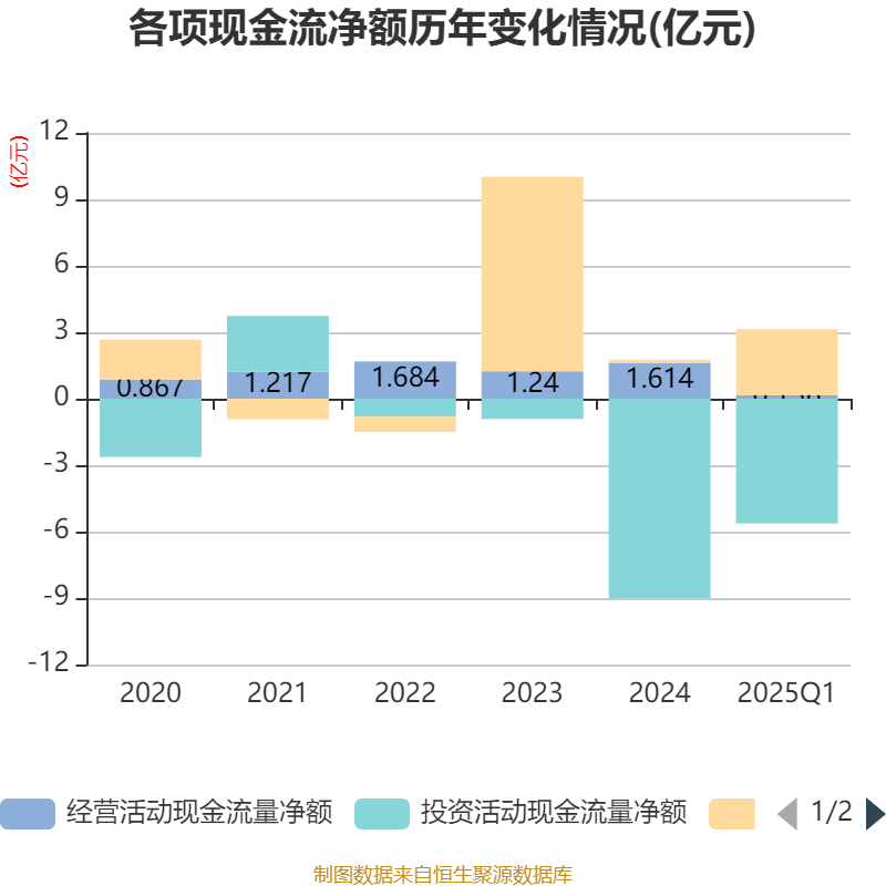 截至2025年一季度末,公司经营活动现金流净额为1562.98万元,同比下降45.17%;筹资活动现金流净额2.99亿元,同比增加3.01亿元;投资活动现金流净额-5.63亿元,上年同期为-7.68亿元。