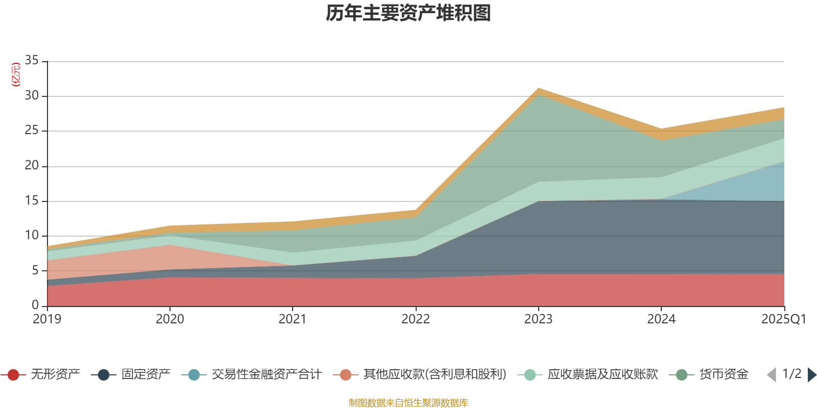 资产重大变化方面,截至2025年一季度末,公司交易性金融资产合计较上年末增加8504.02%,占公司总资产比重上升19.57个百分点;货币资金较上年末减少47.41%,占公司总资产比重下降11个百分点;固定资产较上年末减少1.78%,占公司总资产比重下降5.19个百分点;无形资产较上年末减少0.62%,占公司总资产比重下降2.05个百分点。