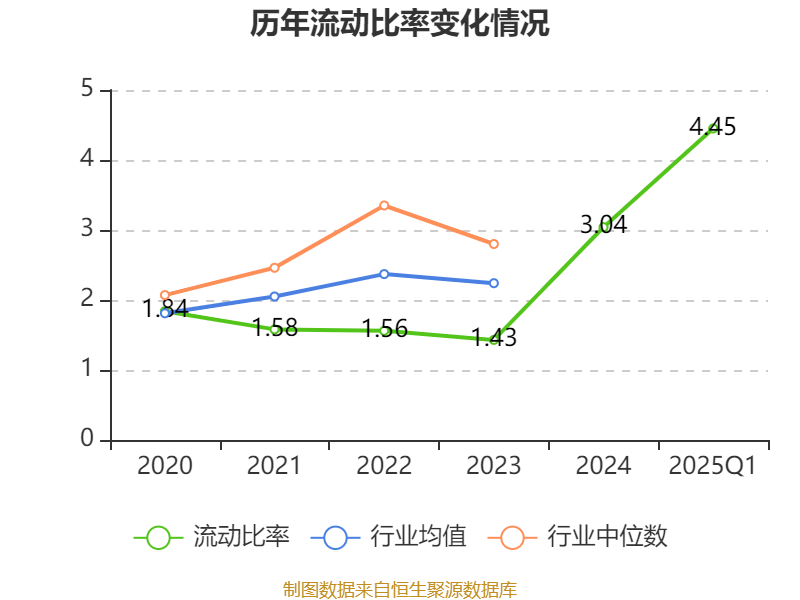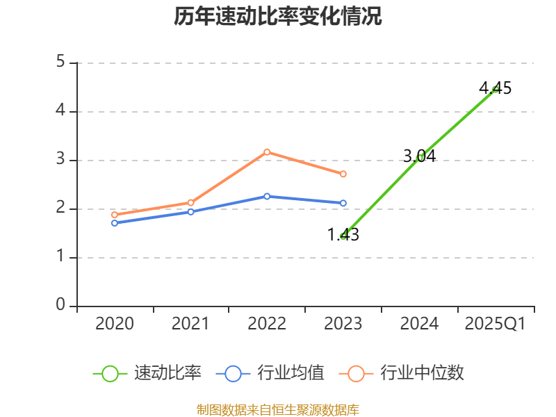 2025年第一季度,公司流动比率为4.45,速动比率为4.45。