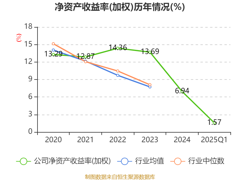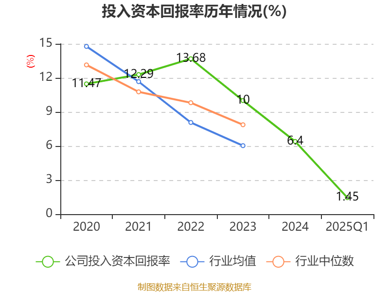 盈利能力方面, 2025年一季度公司加权平均净资产收益率为1.57%,同比上升0.15个百分点。公司2025年第一季度投入资本回报率为1.45%,较上年同期上升0.14个百分点。