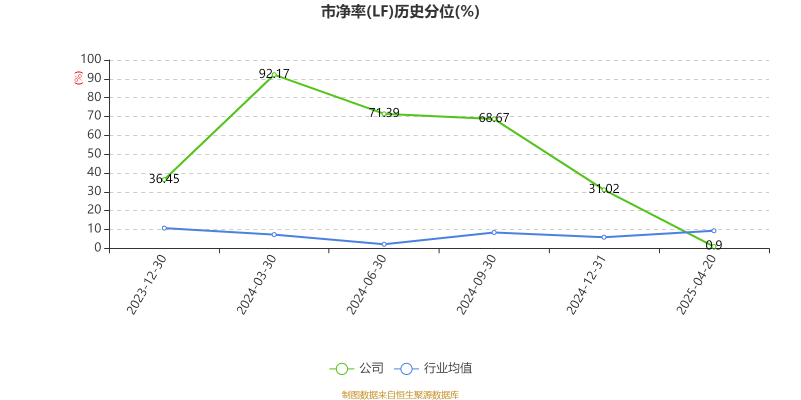 市盈率、市净率为负时,不显示当期分位数,会导致折线图中断。