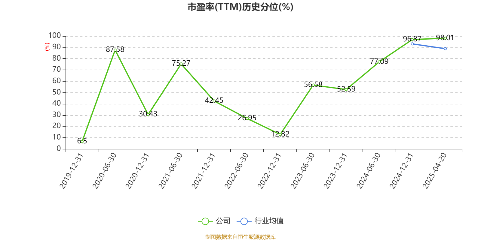 市盈率、市净率为负时,不显示当期分位数,会导致折线图中断。