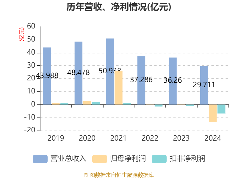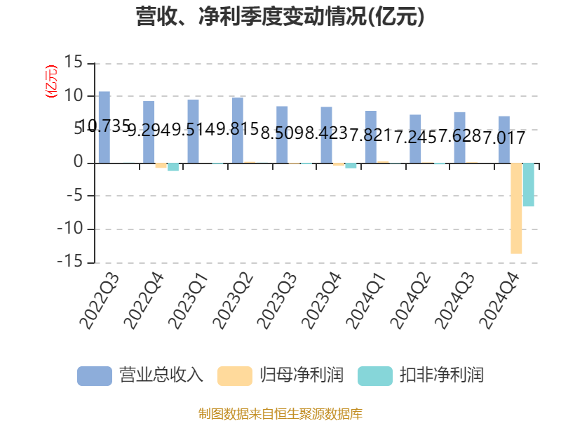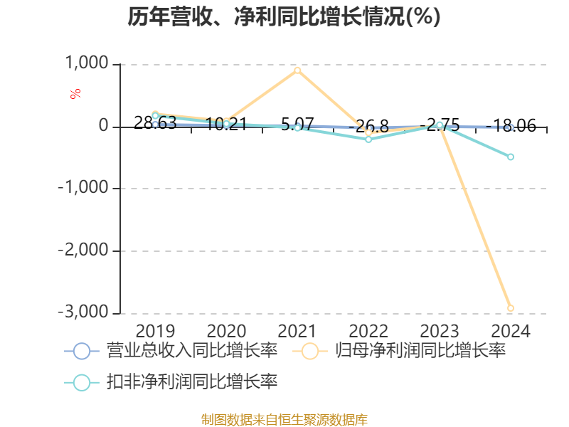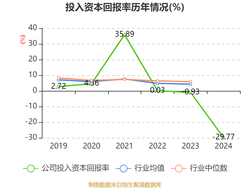 数据显示,2024年公司加权平均净资产收益率为-29.43%,较上年同期下降28.59个百分点。公司2024年投入资本回报率为-29.77%,较上年同期下降28.84个百分点。