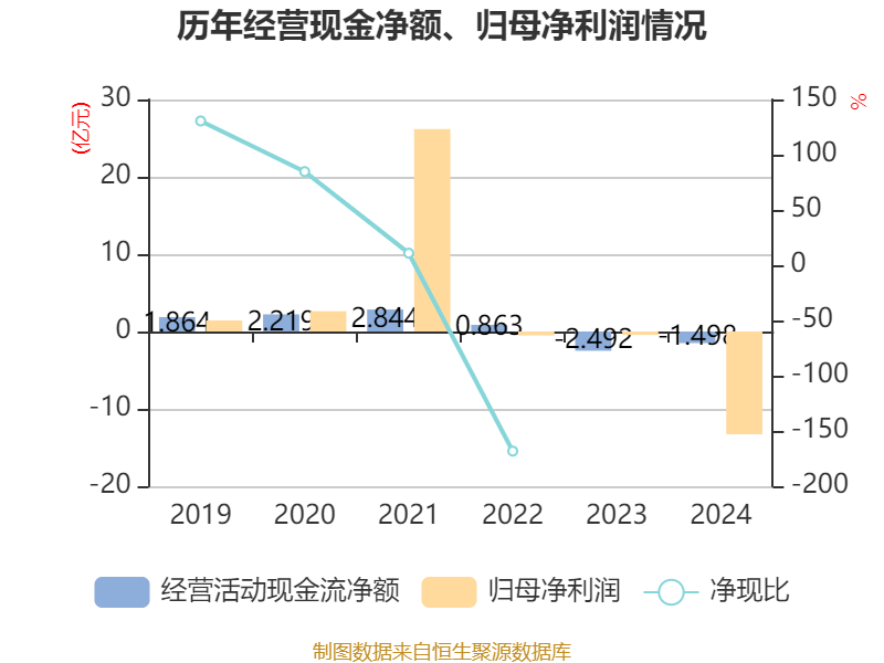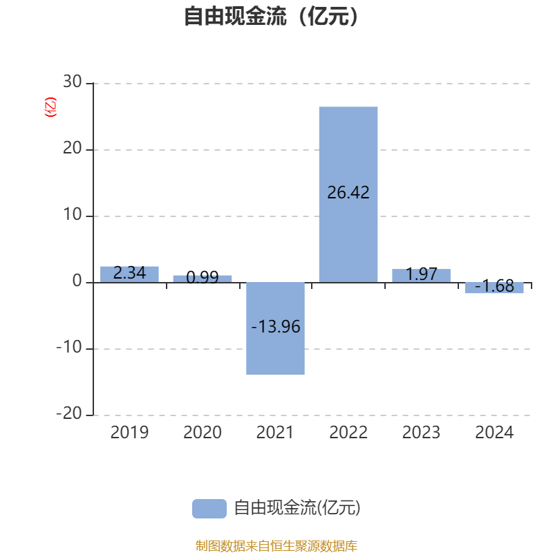 截至2024年,公司经营活动现金流净额为-1.5亿元,同比增加9934.99万元;筹资活动现金流净额-9449.32万元,同比增加5007.73万元;投资活动现金流净额3951.2万元,上年同期为4.73亿元。