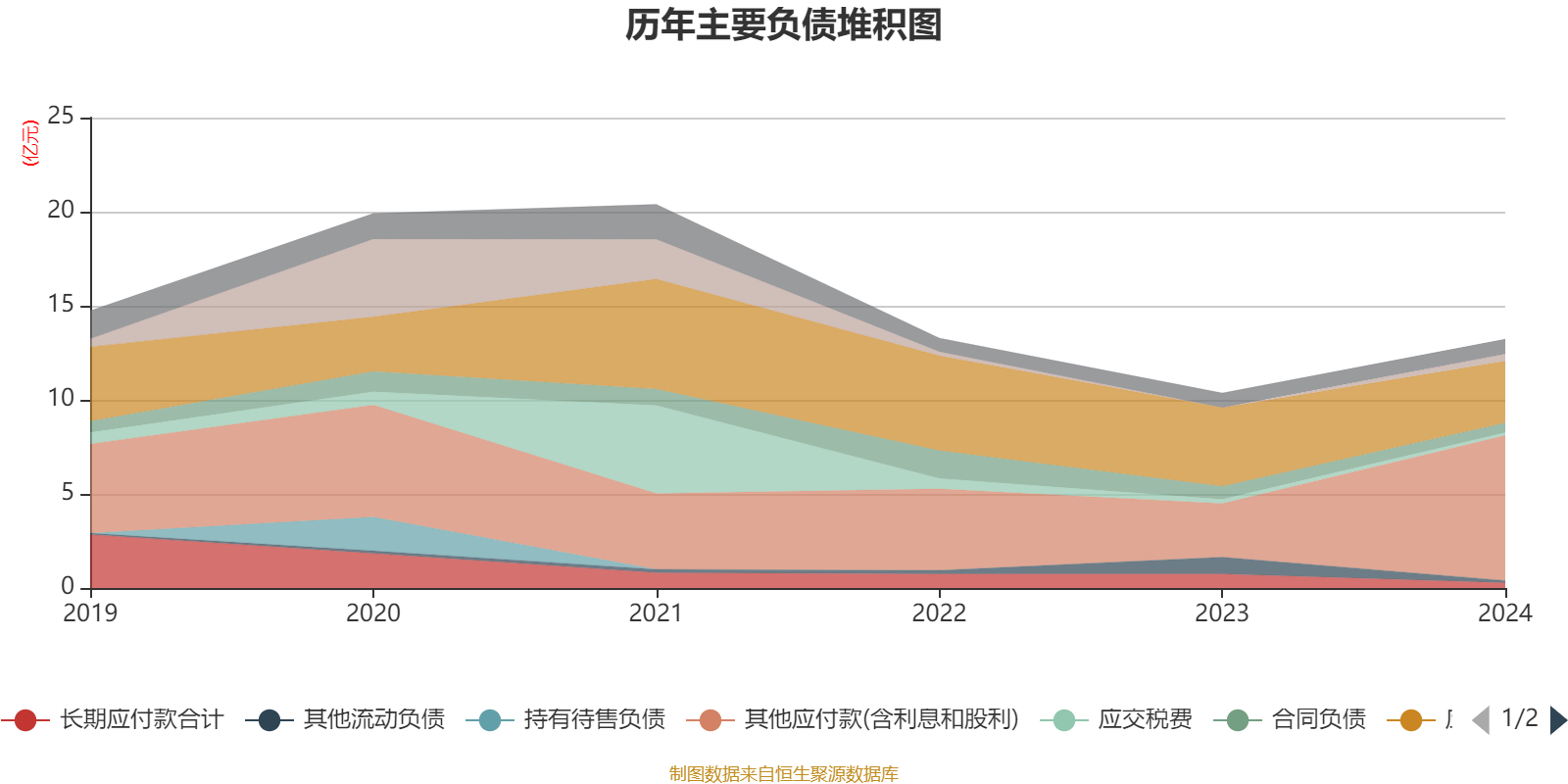 负债重大变化方面,截至2024年末,公司其他应付款(含利息和股利)较上年末增加170.45%,占公司总资产比重上升10.88个百分点;其他流动负债较上年末减少87.21%,占公司总资产比重下降1.21个百分点;短期借款较上年末增加38866.48%,占公司总资产比重上升0.76个百分点;长期应付款合计较上年末减少62.91%,占公司总资产比重下降0.65个百分点。