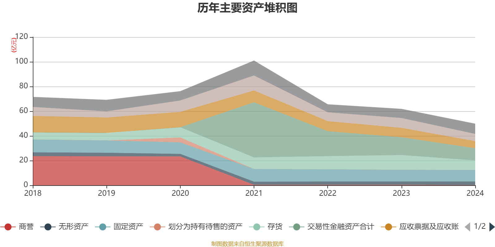 资产重大变化方面,截至2024年末,公司存货较上年末减少35.09%,占公司总资产比重下降3.77个百分点;交易性金融资产合计较上年末减少31.65%,占公司总资产比重下降3.57个百分点;固定资产较上年末减少2.34%,占公司总资产比重上升3.24个百分点;其他非流动资产较上年末增加80.57%,占公司总资产比重上升2.63个百分点。