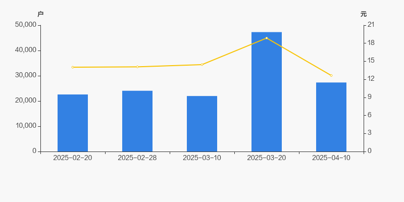 2025年2月20日至今,公司股东户数显著增长,区间涨幅为21.03%。2025年2月20日至2025年4月10日区间股价下降9.84%。