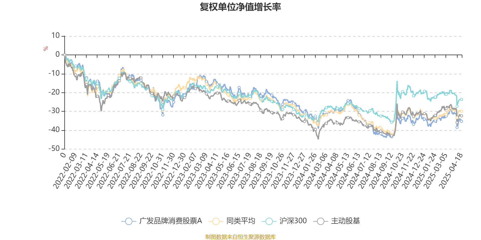 截至4月18日,广发品牌消费股票A近三个月复权单位净值增长率为0.41%,位于同类可比基金38/46;近半年复权单位净值增长率为-0.72%,位于同类可比基金33/46;近一年复权单位净值增长率为-8.58%,位于同类可比基金38/46;近三年复权单位净值增长率为-25.14%,位于同类可比基金35/43。