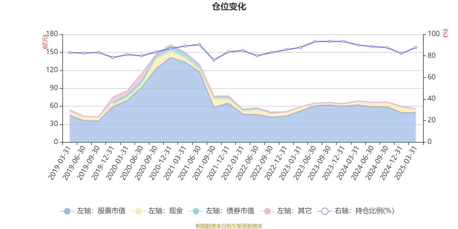 据定期报告数据统计,近三年平均股票仓位为87.82%,同类平均为80.15%。2023年三季度末基金达到93.5%的最高仓位,2021年三季度末最低,为76.08%。