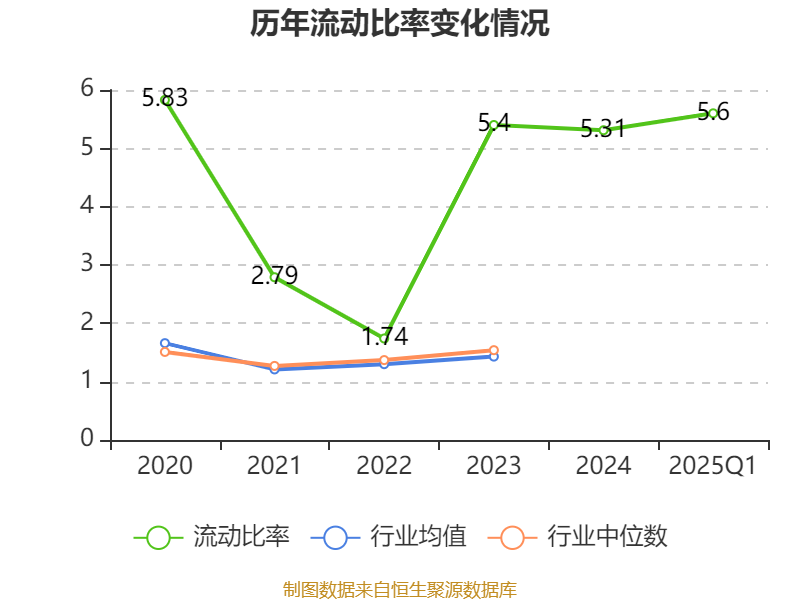 2025年第一季度,公司流动比率为5.6,速动比率为5.1。