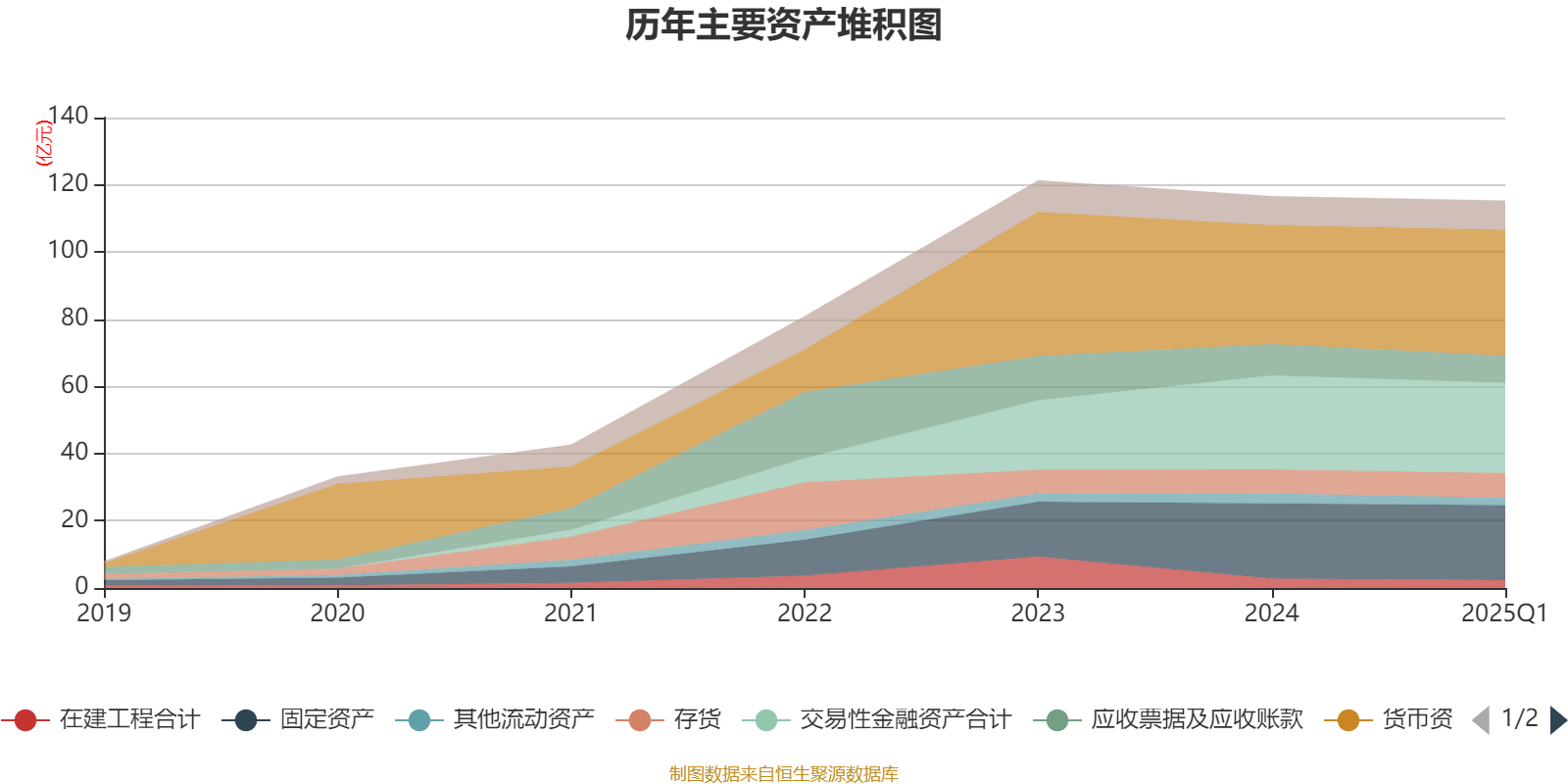 资产重大变化方面,截至2025年一季度末,公司货币资金较上年末增加5.88%,占公司总资产比重上升2.15个百分点;应收票据及应收账款较上年末减少14.57%,占公司总资产比重下降1.1个百分点;其他流动资产较上年末减少26.01%,占公司总资产比重下降0.64个百分点;交易性金融资产合计较上年末减少3.65%,占公司总资产比重下降0.61个百分点。