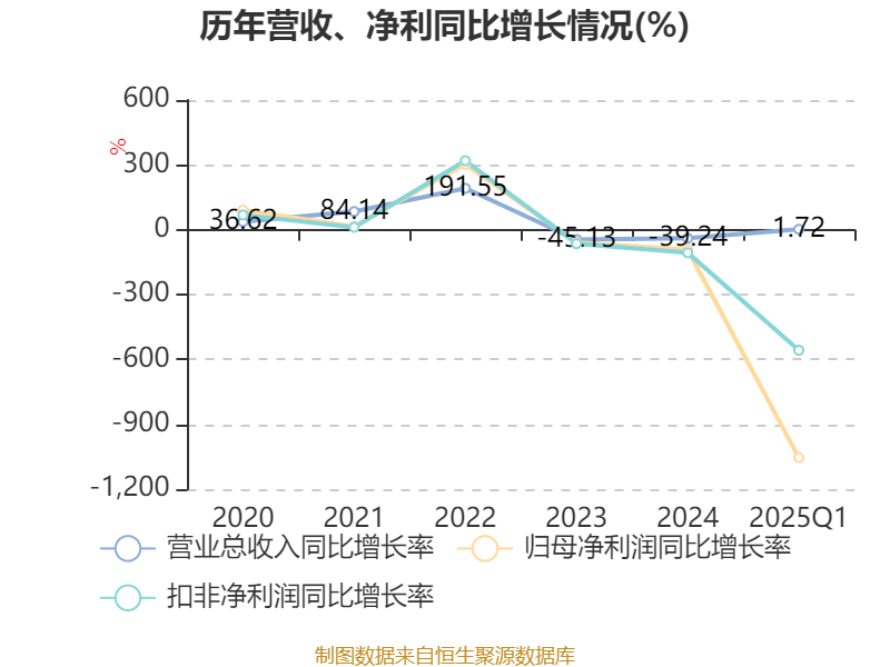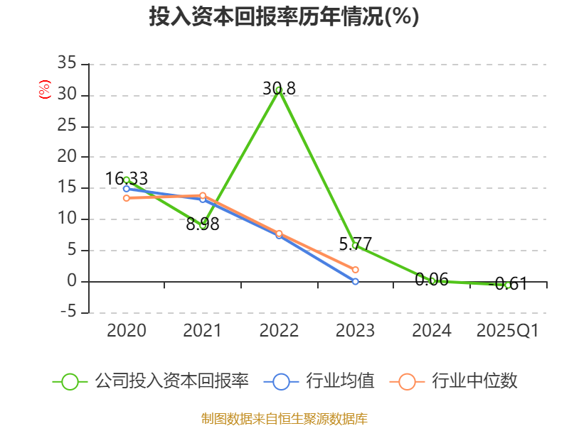 盈利能力方面, 2025年一季度公司加权平均净资产收益率为-0.42%,同比下降0.46个百分点。公司2025年第一季度投入资本回报率为-0.61%,较上年同期下降0.34个百分点。
