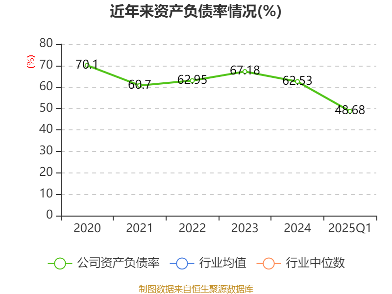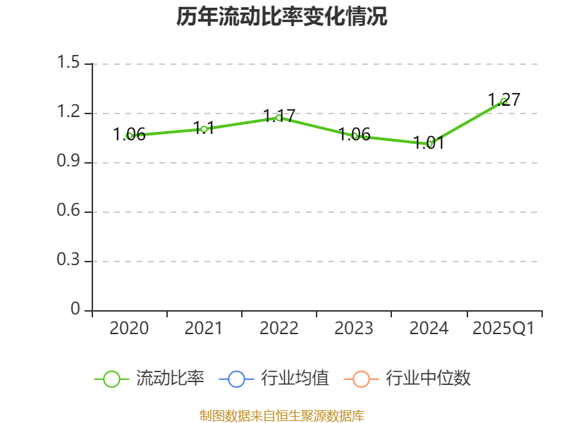2025年第一季度,公司流动比率为1.27,速动比率为0.67。