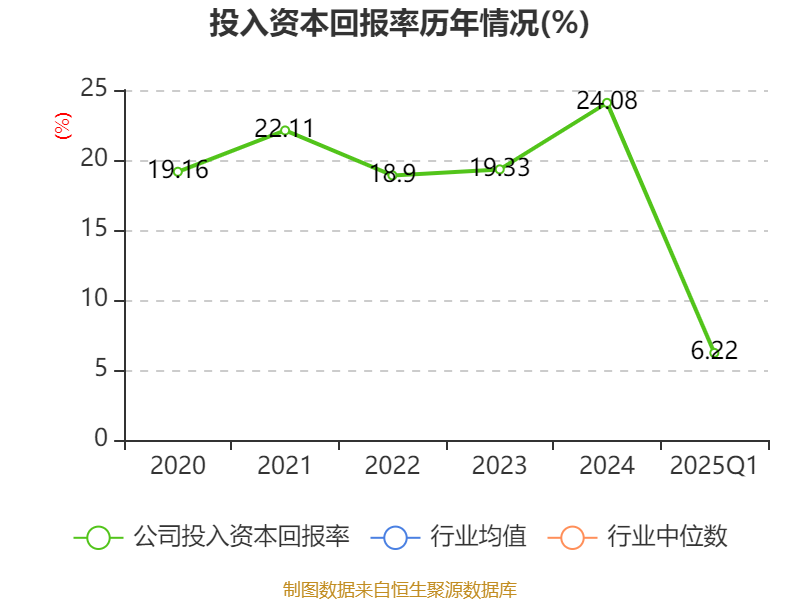 盈利能力方面, 2025年一季度公司加权平均净资产收益率为5.93%,同比上升5.04个百分点。公司2025年第一季度投入资本回报率为6.22%,较上年同期上升4.45个百分点。