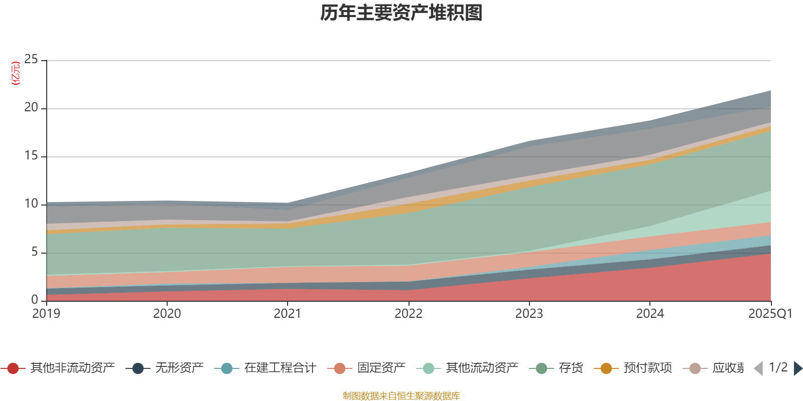资产重大变化方面,截至2025年一季度末,公司其他流动资产较上年末增加198.62%,占公司总资产比重上升9.05个百分点;货币资金较上年末减少40.39%,占公司总资产比重下降7.11个百分点;存货较上年末减少2.72%,占公司总资产比重下降5.7个百分点;其他非流动资产较上年末增加42.88%,占公司总资产比重上升4.1个百分点。