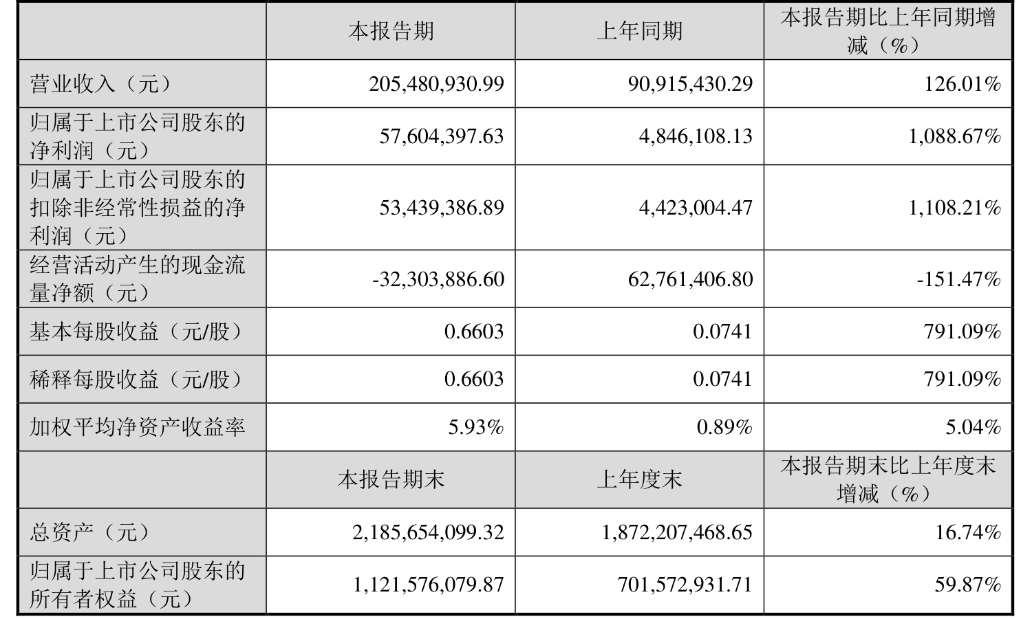 中证智能财讯亚联机械(001395)4月22日披露2025年第一季度报告。公司实现营业总收入2.05亿元,同比增长126.01%;归母净利润5760.44万元,同比增长1088.67%;扣非净利润5343.94万元,同比增长1108.21%;经营活动产生的现金流量净额为-3230.39万元,上年同期为6276.14万元;报告期内,亚联机械基本每股收益为0.6603元,加权平均净资产收益率为5.93%。