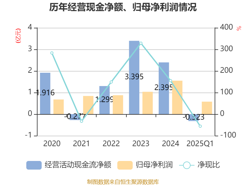 截至2025年一季度末,公司经营活动现金流净额为-3230.39万元,同比减少9506.53万元;筹资活动现金流净额3.81亿元,同比增加3.82亿元;投资活动现金流净额-4.57亿元,上年同期为-9554.46万元。