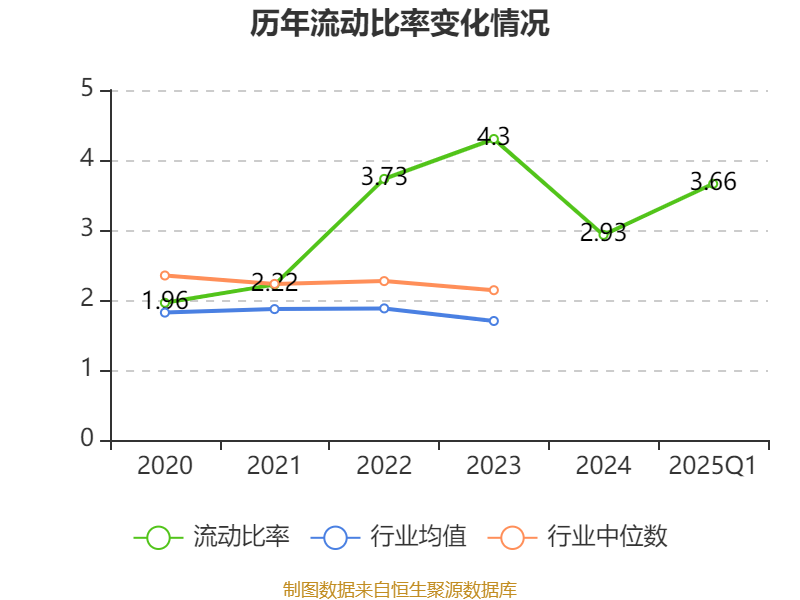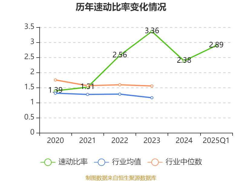 2025年第一季度,公司流动比率为3.66,速动比率为2.89。