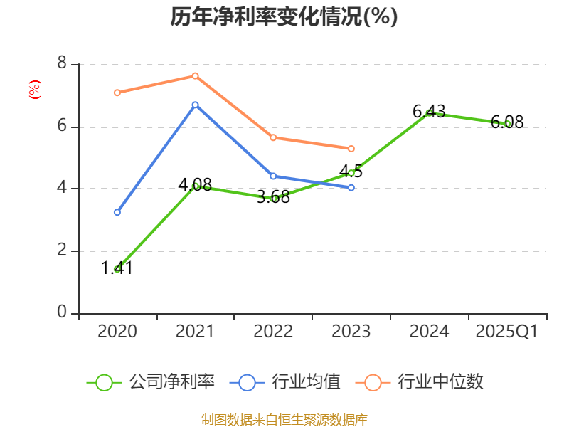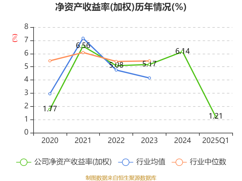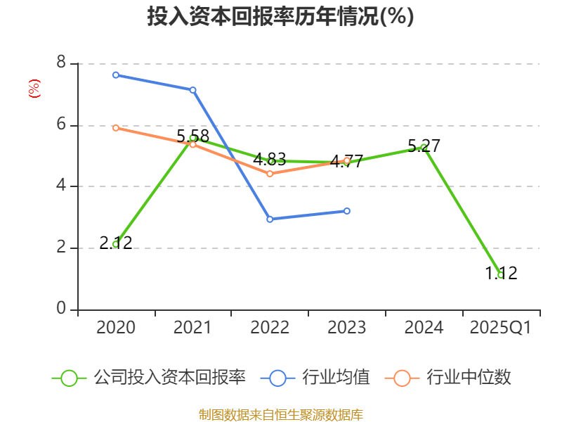 盈利能力方面, 2025年一季度公司加权平均净资产收益率为1.21%,同比下降0.15个百分点。公司2025年第一季度投入资本回报率为1.12%,较上年同期下降0.06个百分点。
