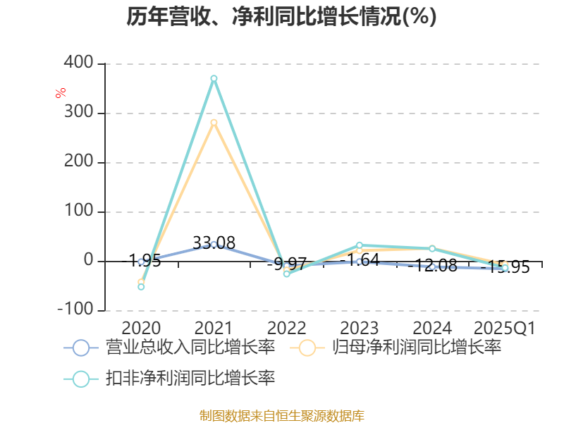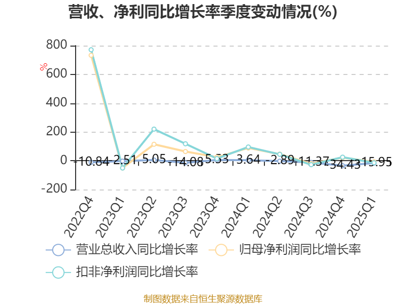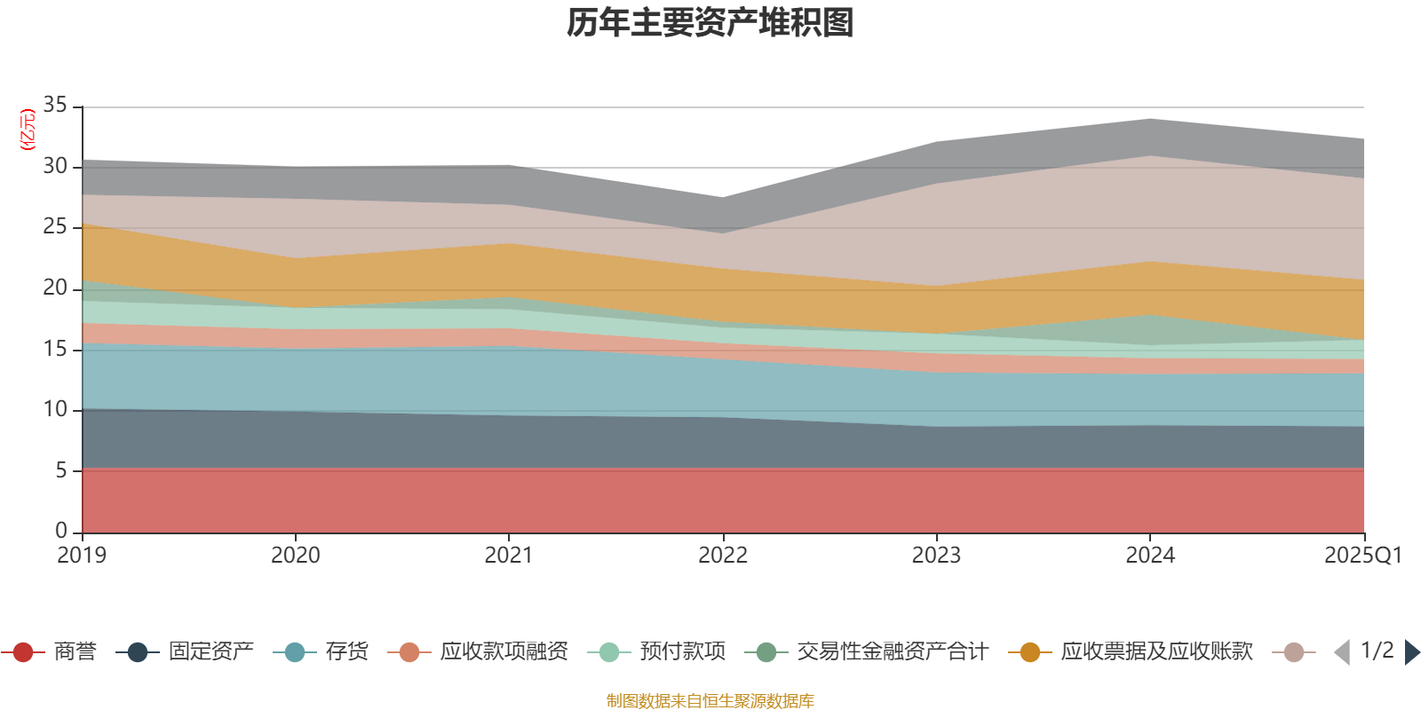 资产重大变化方面,截至2025年一季度末,公司交易性金融资产合计较上年末减少100%,占公司总资产比重下降7.36个百分点;应收票据及应收账款较上年末增加12.28%,占公司总资产比重上升2.34个百分点;预付款项较上年末增加46.83%,占公司总资产比重上升1.71个百分点;存货较上年末增加3.78%,占公司总资产比重上升1.13个百分点。