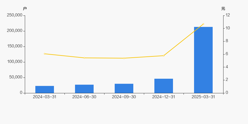 2024年3月31日至今,公司股东户数成倍增长,区间涨幅达834.40%。2024年3月31日至2025年3月31日区间股价上涨76.04%。