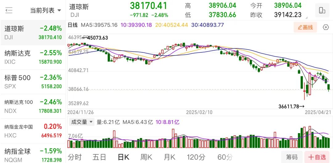 截至收盘,道指跌2.48%,标普500指数跌2.36%,纳指跌2.55%。