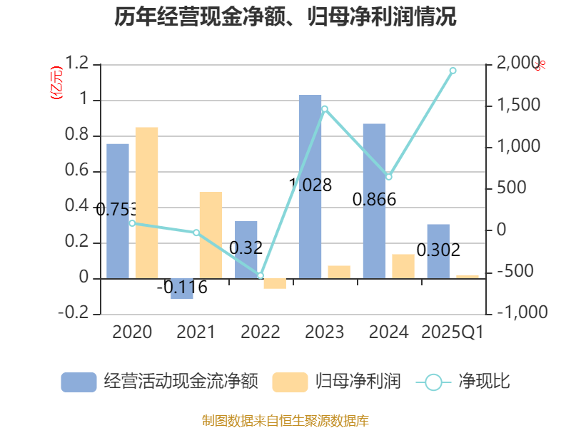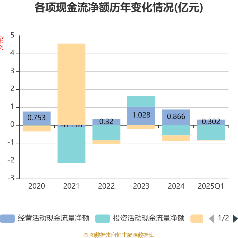 截至2025年一季度末,公司经营活动现金流净额为3023.12万元,同比增长12.5%;筹资活动现金流净额-165.31万元,同比增加143.51万元;投资活动现金流净额-8575.3万元,上年同期为-5176.04万元。