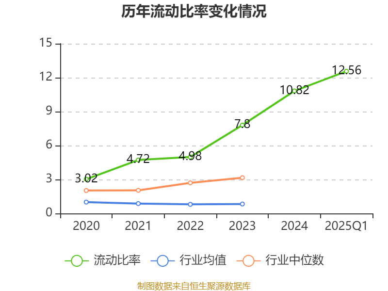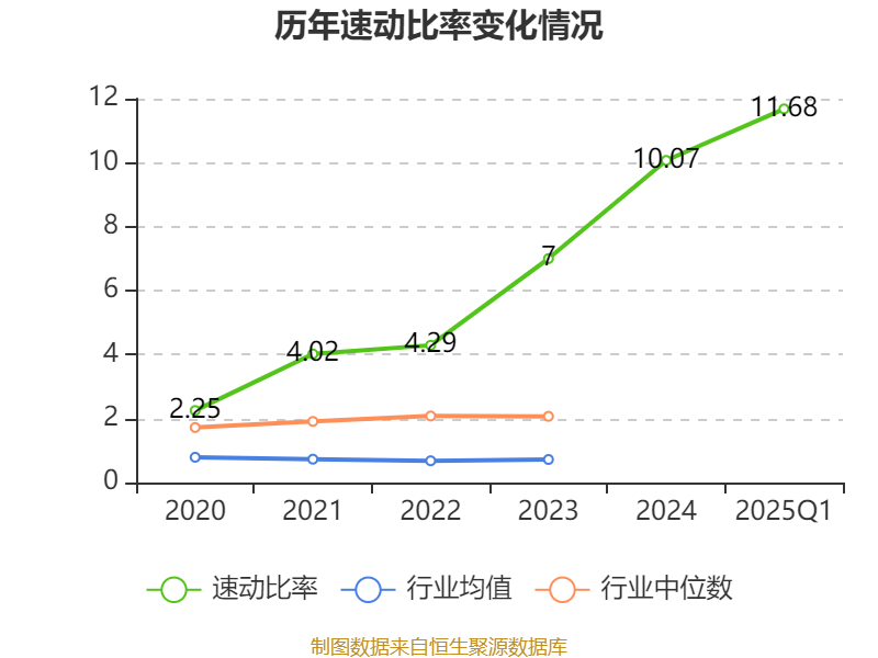 2025年第一季度,公司流动比率为12.56,速动比率为11.68。