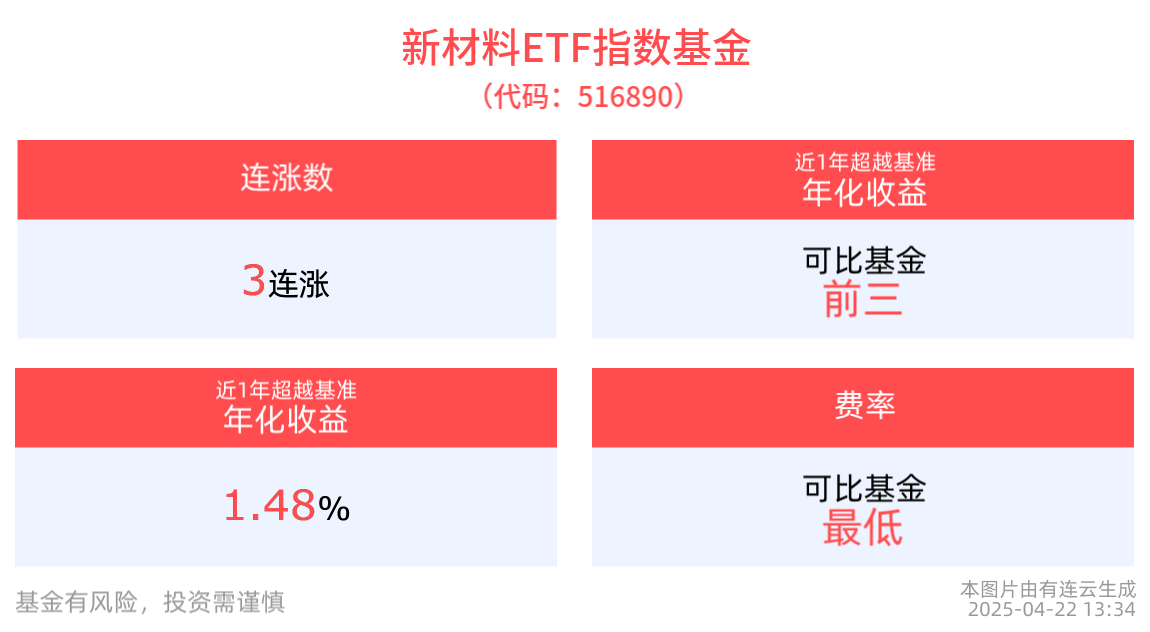 新材料ETF指数基金(516890)上涨0.61%, 冲击3连涨。