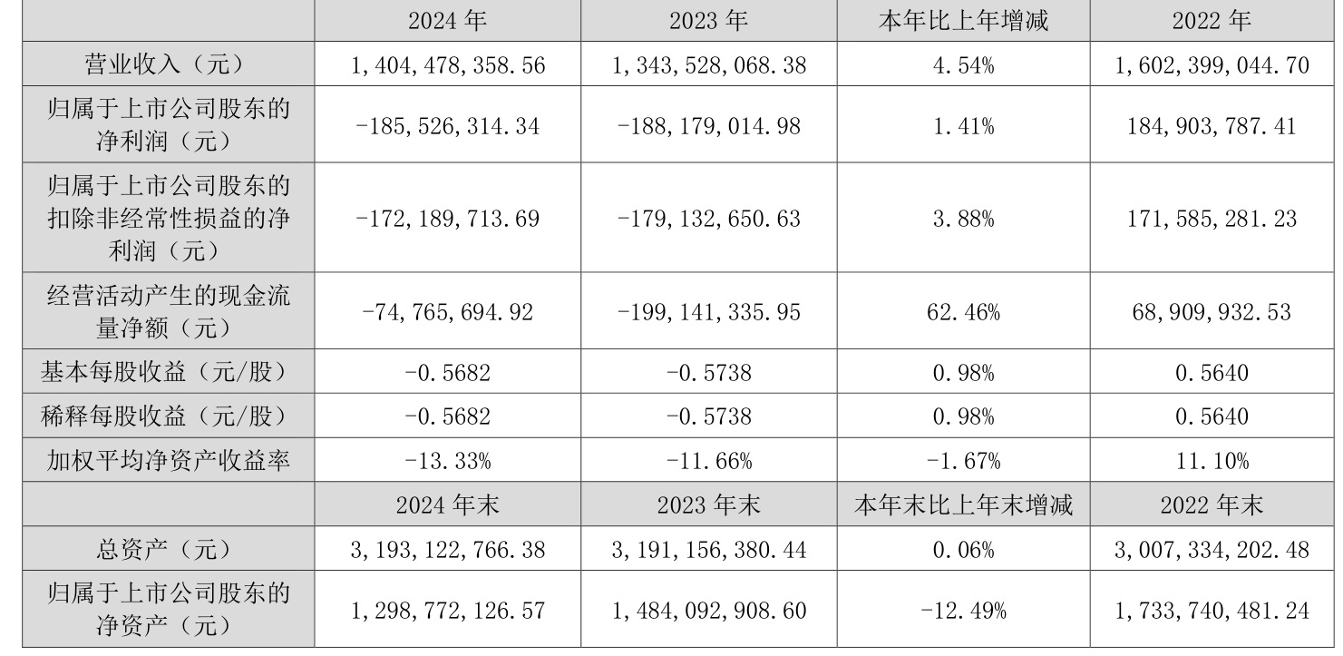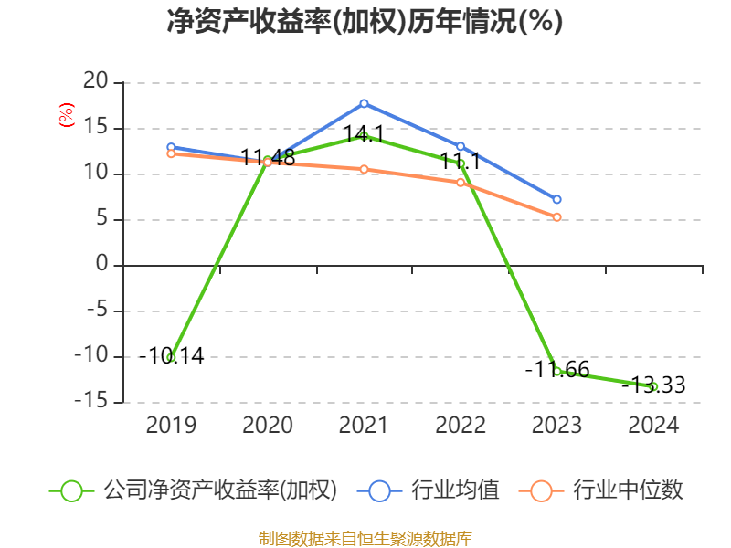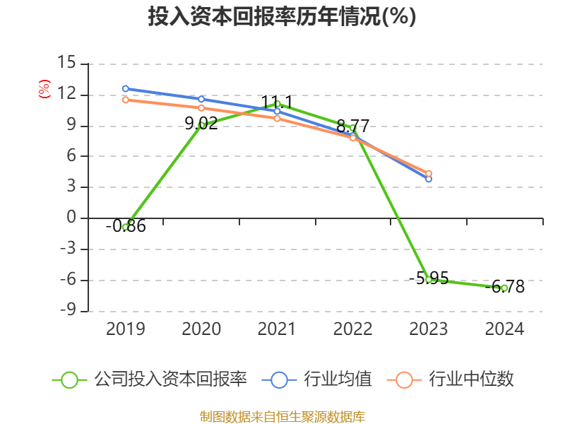 数据显示,2024年公司加权平均净资产收益率为-13.33%,较上年同期下降1.67个百分点。公司2024年投入资本回报率为-6.78%,较上年同期下降0.83个百分点。