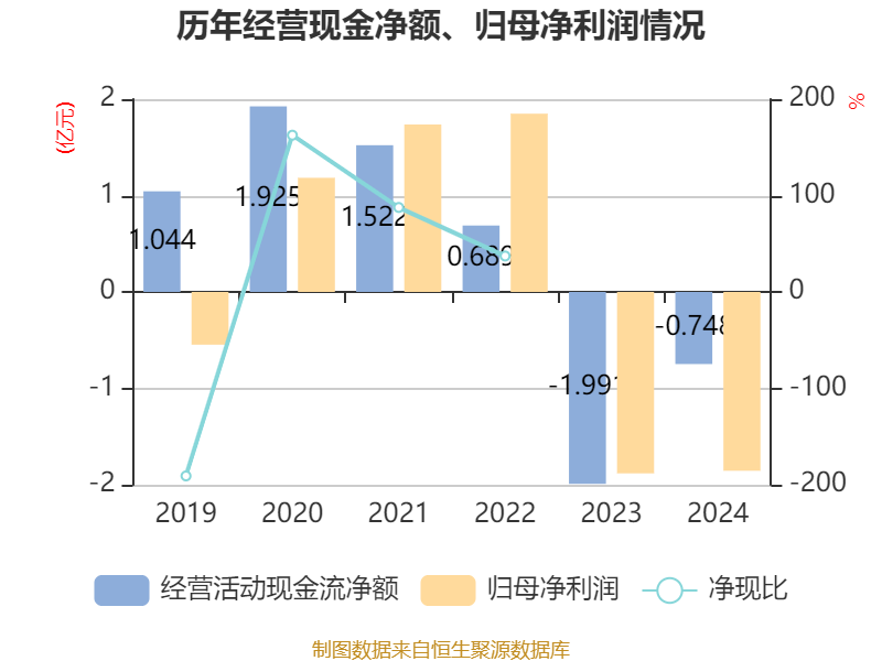 截至2024年,公司经营活动现金流净额为-7476.57万元,同比增加1.24亿元;筹资活动现金流净额2.03亿元,同比增加135.84万元;投资活动现金流净额-1.65亿元,上年同期为-2.89亿元。
