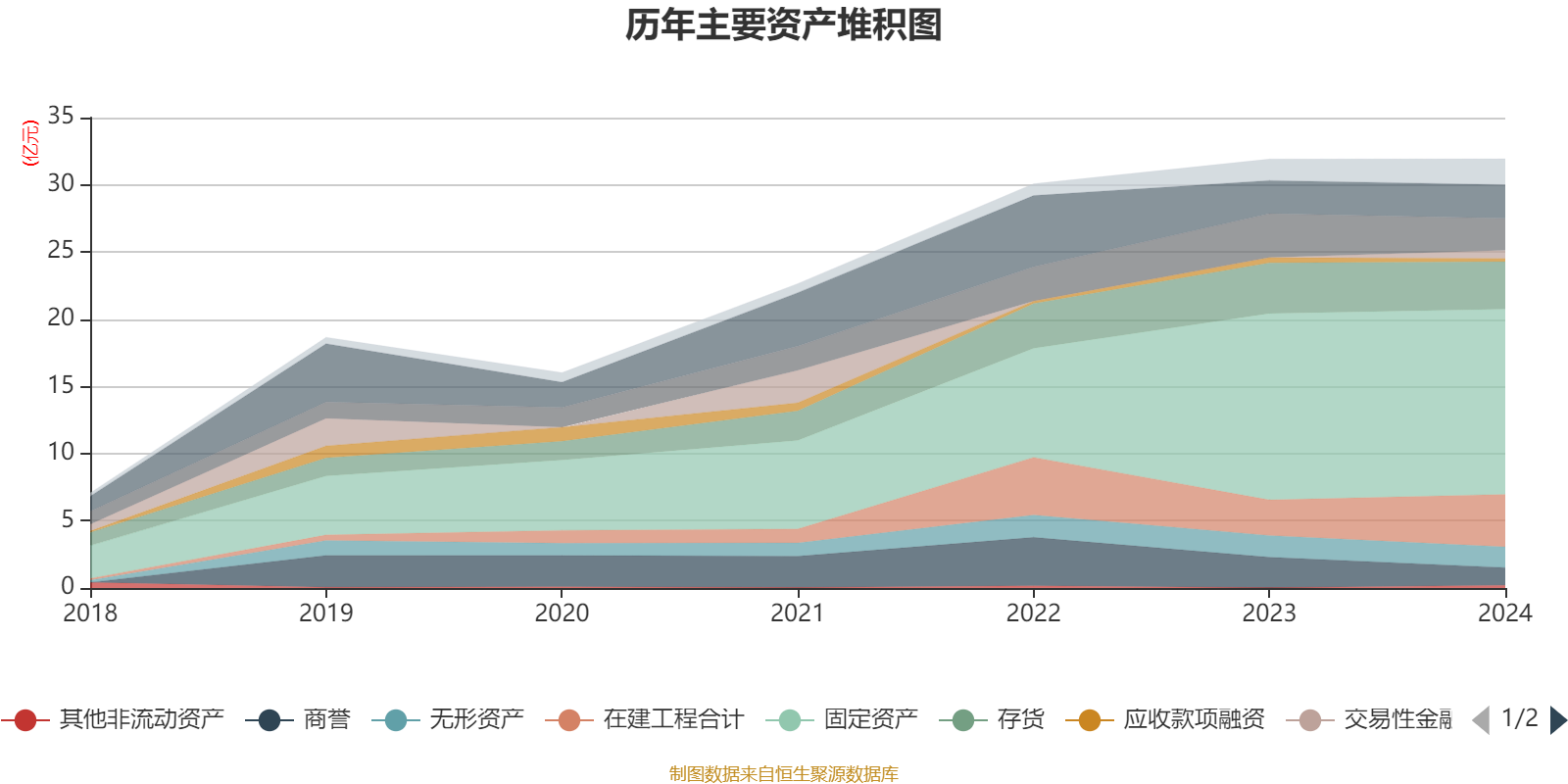 资产重大变化方面,截至2024年末,公司在建工程合计较上年末增加47.54%,占公司总资产比重上升3.94个百分点;商誉较上年末减少42.02%,占公司总资产比重下降2.99个百分点;应收票据及应收账款较上年末减少27.13%,占公司总资产比重下降2.78个百分点;交易性金融资产合计占公司总资产的1.88%,上年末为0。