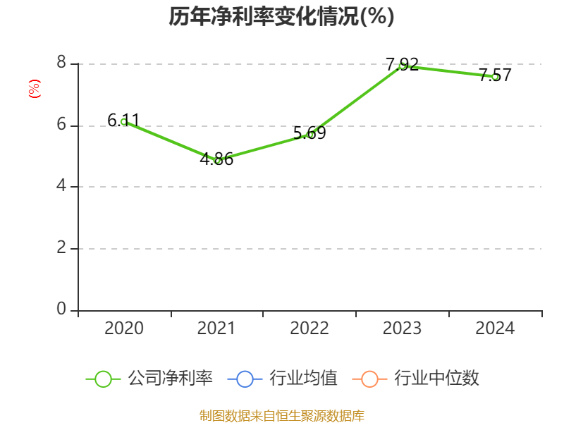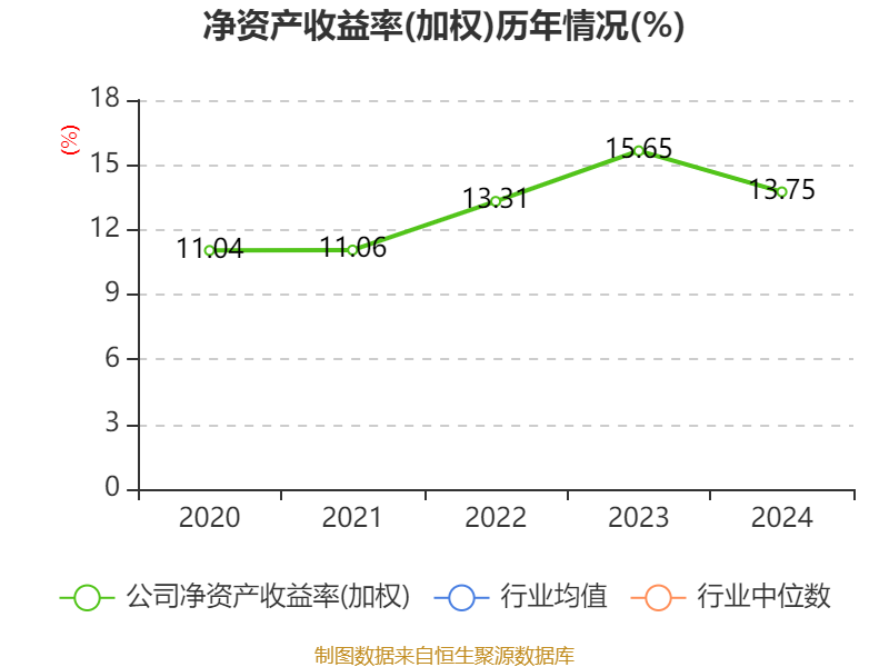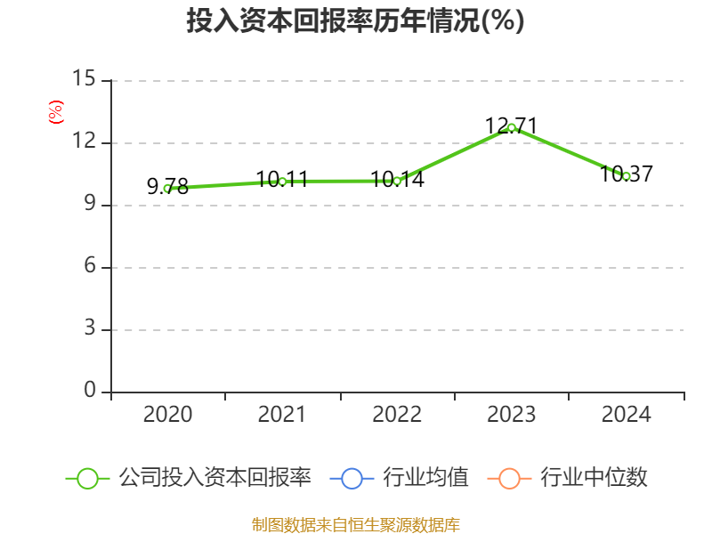 数据显示,2024年公司加权平均净资产收益率为13.75%,较上年同期下降1.9个百分点。公司2024年投入资本回报率为10.37%,较上年同期下降2.34个百分点。