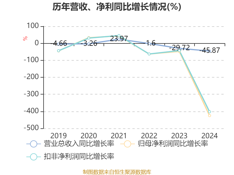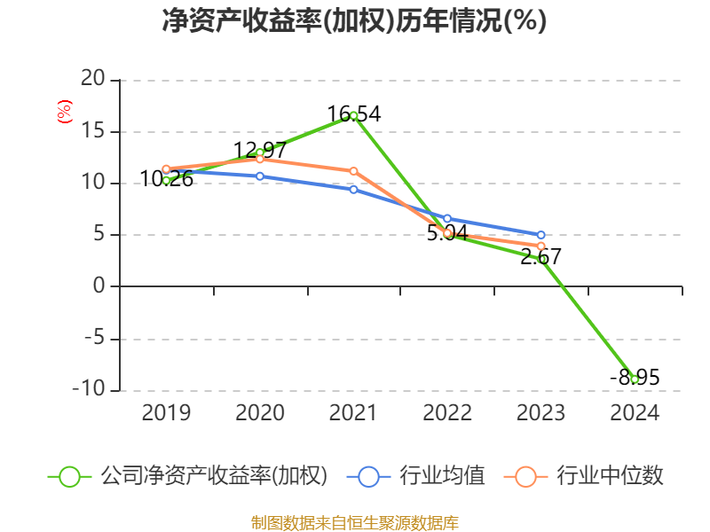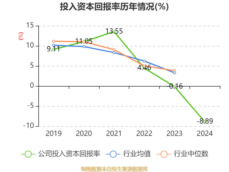 数据显示,2024年公司加权平均净资产收益率为-8.95%,较上年同期下降11.62个百分点。公司2024年投入资本回报率为-8.89%,较上年同期下降8.73个百分点。