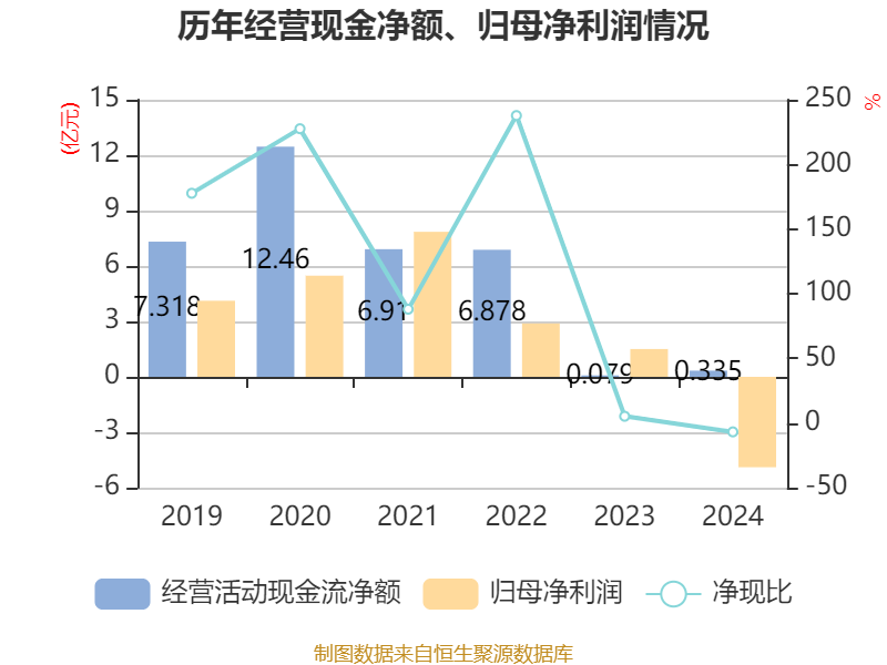 截至2024年,公司经营活动现金流净额为3353.44万元,同比增长327.08%;筹资活动现金流净额2524.46万元,同比增加2868.22万元;投资活动现金流净额-2.96亿元,上年同期为2.65亿元。
