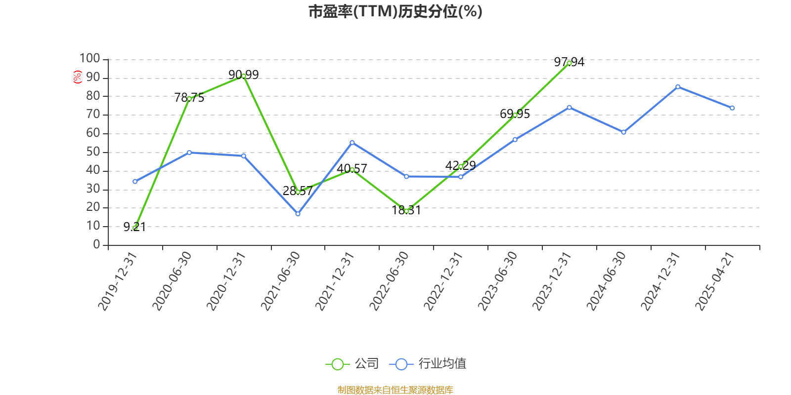 市盈率、市净率为负时,不显示当期分位数,会导致折线图中断。