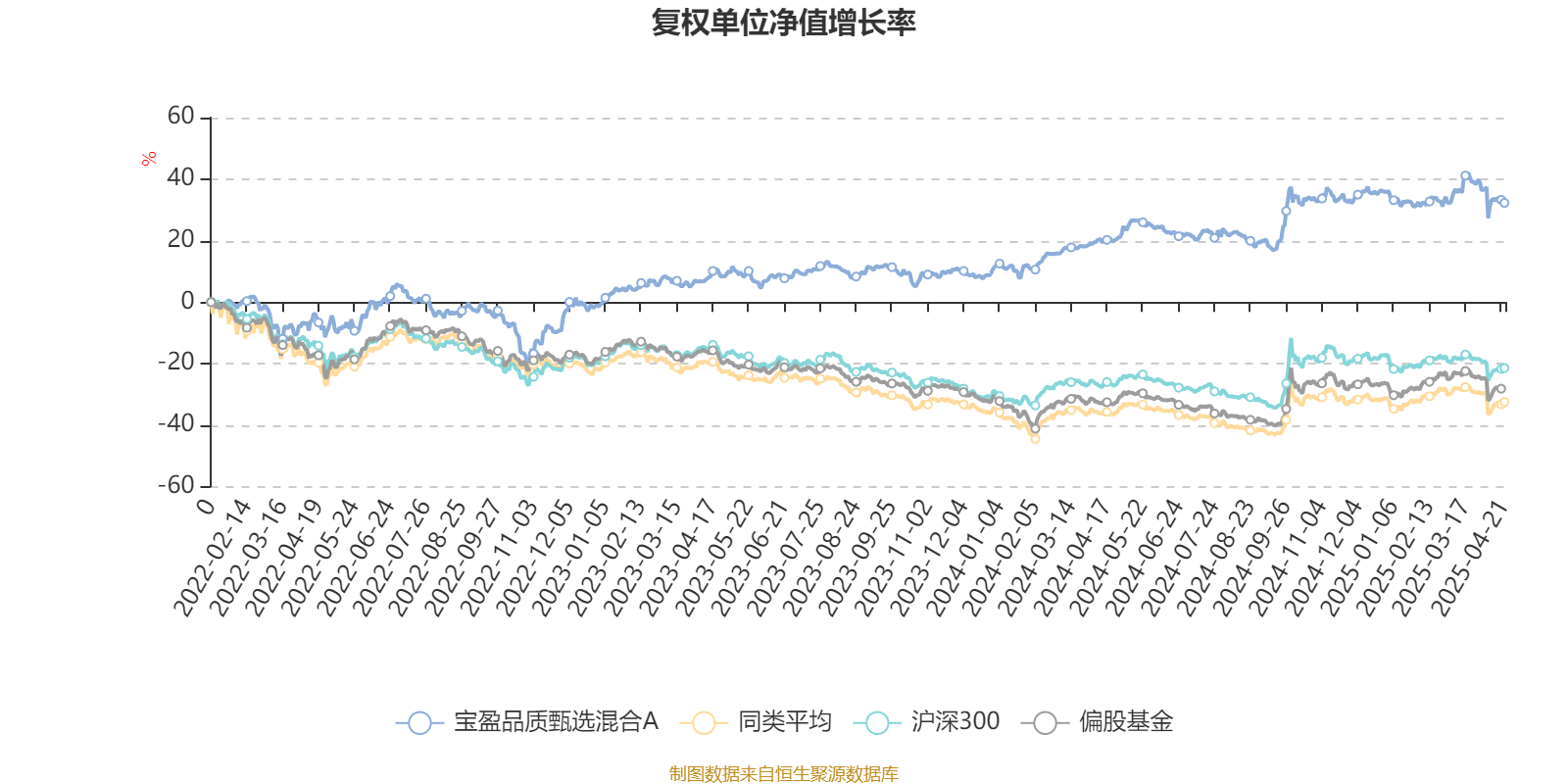 截至4月21日,宝盈品质甄选混合A近三个月复权单位净值增长率为0.02%,位于同类可比基金91/210;近半年复权单位净值增长率为-0.57%,位于同类可比基金71/209;近一年复权单位净值增长率为9.71%,位于同类可比基金78/209;近三年复权单位净值增长率为45.28%,位于同类可比基金1/196。