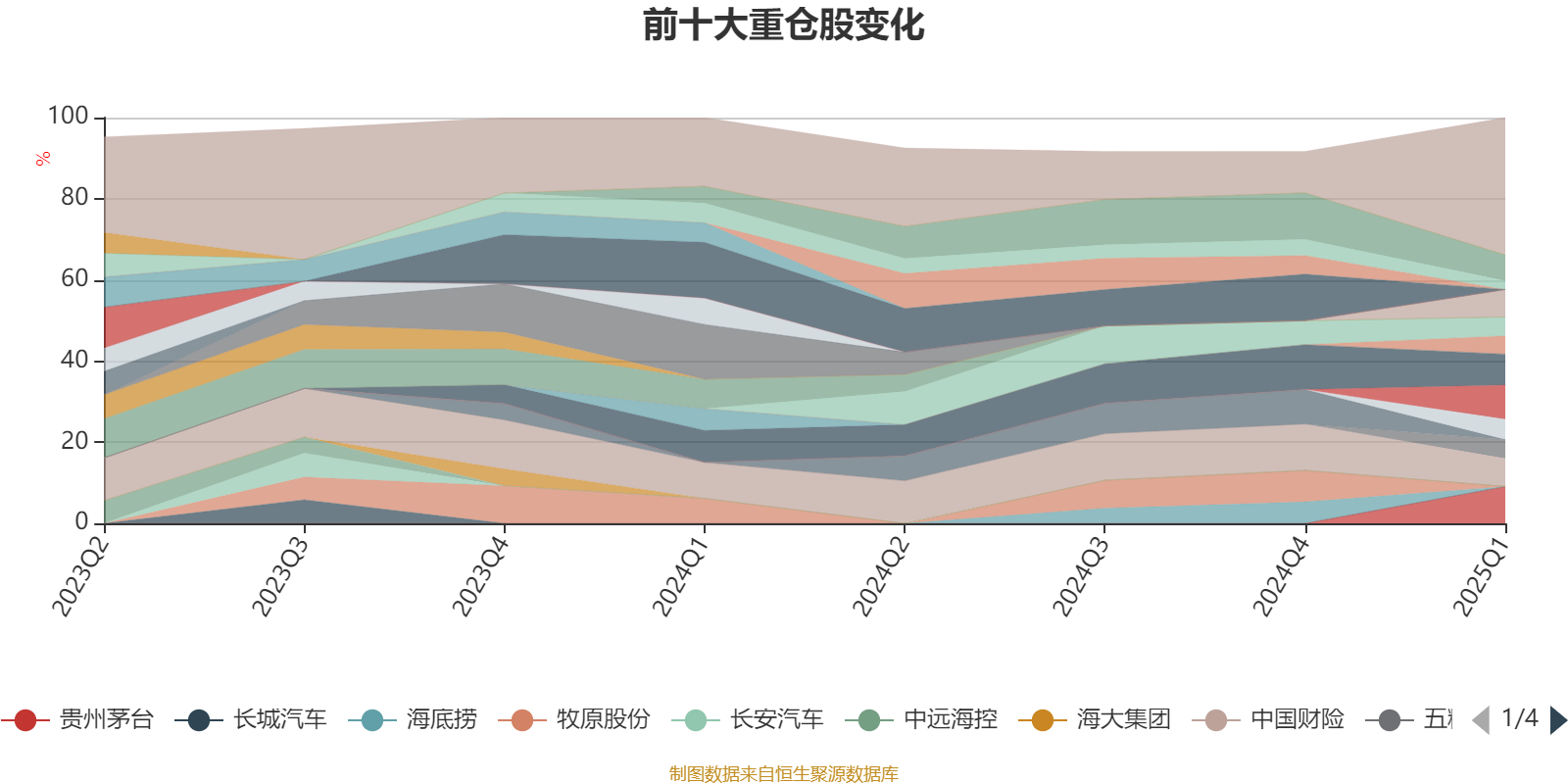 该基金持股集中度较高,近2年前十大重仓股集中度长期超过60%。截至2025年一季度末,基金十大重仓股分别是贵州茅台、腾讯控股、广深铁路、中国财险、美团-W、中国重汽、山西汾酒、五粮液、蒙牛乳业、国投电力、广深铁路股份。