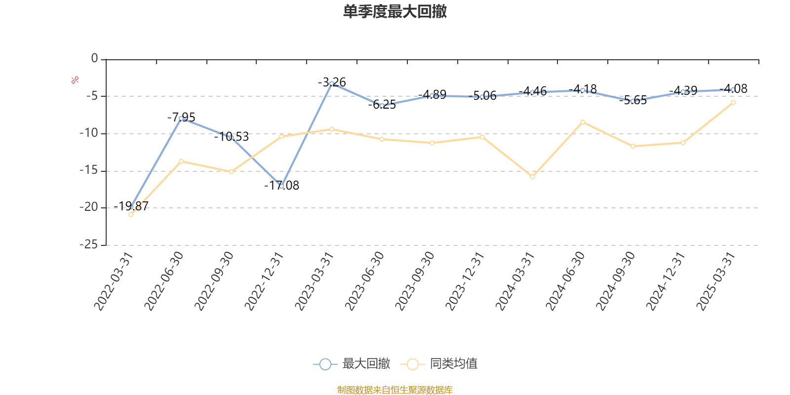 截至4月21日,基金近三年最大回撤为25.13%,同类可比基金排名180/198。单季度最大回撤出现在2022年一季度,为19.87%。
