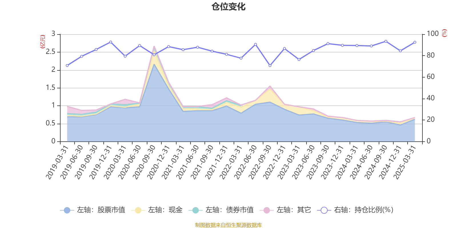 据定期报告数据统计,近三年平均股票仓位为86.57%,同类平均为80.15%。2024年三季度末基金达到93.38%的最高仓位,2022年三季度末最低,为70.78%。