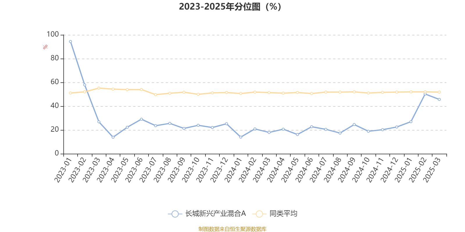 通过所选区间该基金净值增长率分位图,可以观察该基金与同类基金业绩比较情况。图为坐标原点到区间内某时点的净值增长率在同类基金中的分位数。