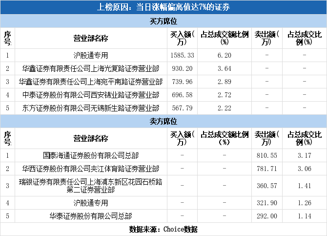 沪股通现身龙虎榜,东方创业涨停(04-22)