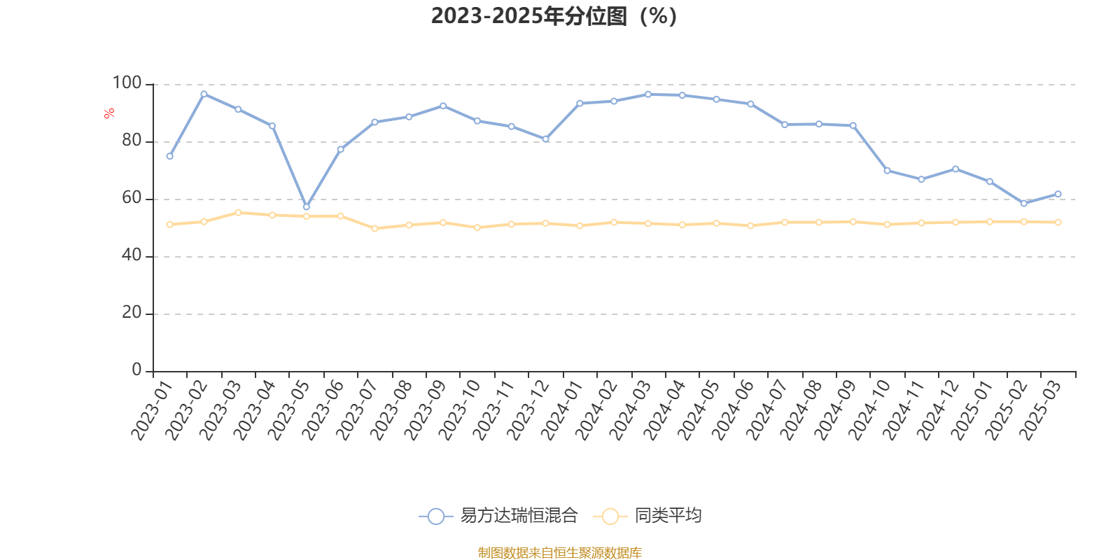 通过所选区间该基金净值增长率分位图,可以观察该基金与同类基金业绩比较情况。图为坐标原点到区间内某时点的净值增长率在同类基金中的分位数。