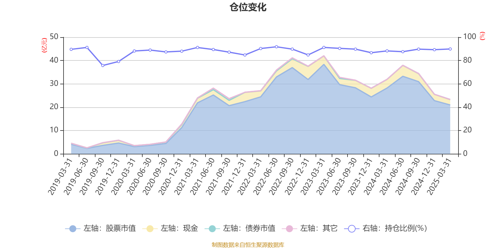 据定期报告数据统计,近三年平均股票仓位为89.11%,同类平均为80.17%。2022年上半年末基金达到91.8%的最高仓位,2019年三季度末最低,为75.76%。