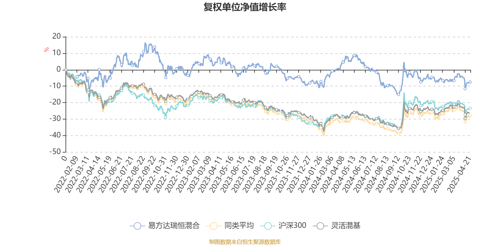 截至4月21日,易方达瑞恒混合近三个月复权单位净值增长率为-2.25%,位于同类可比基金570/918;近半年复权单位净值增长率为-5.07%,位于同类可比基金639/918;近一年复权单位净值增长率为-14.35%,位于同类可比基金899/918;近三年复权单位净值增长率为-1.39%,位于同类可比基金310/901。
