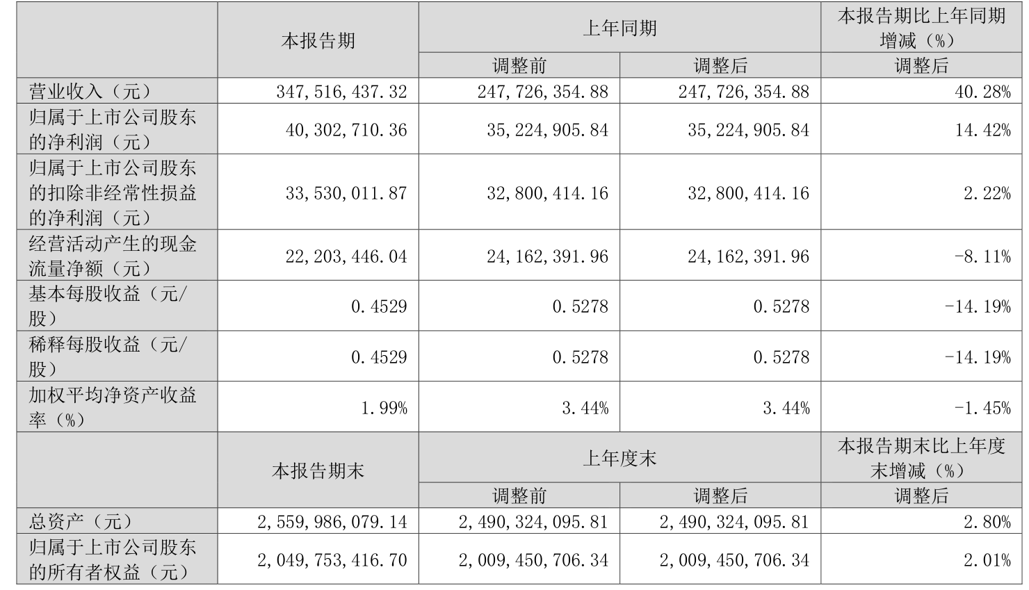 中证智能财讯博实结(301608)4月23日披露2025年第一季度报告。公司实现营业总收入3.48亿元,同比增长40.28%;归母净利润4030.27万元,同比增长14.42%;扣非净利润3353万元,同比增长2.22%;经营活动产生的现金流量净额为2220.34万元,同比下降8.11%;报告期内,博实结基本每股收益为0.4529元,加权平均净资产收益率为1.99%。