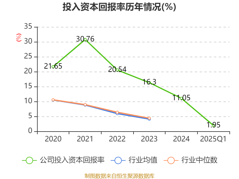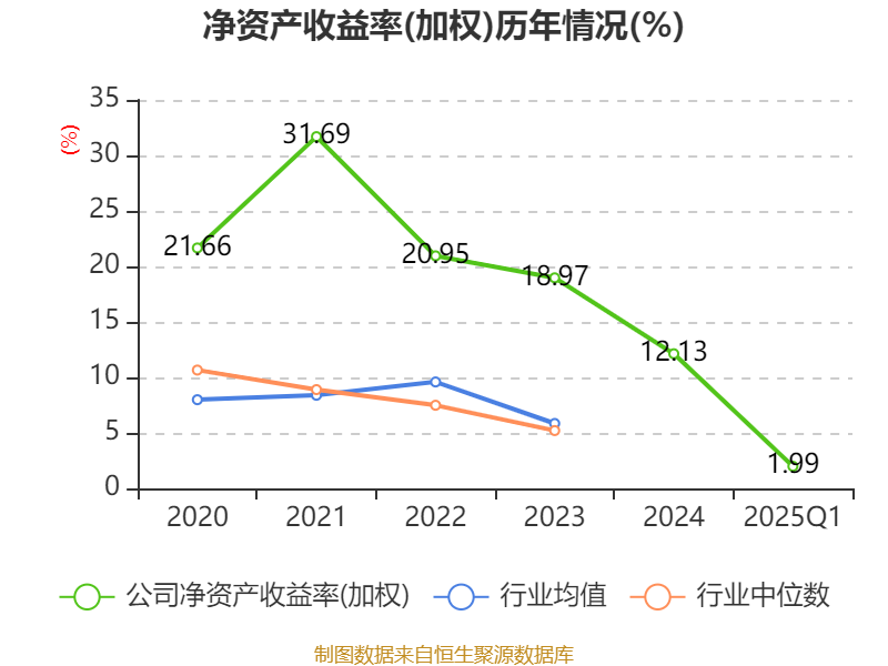 盈利能力方面, 2025年一季度公司加权平均净资产收益率为1.99%,同比下降1.45个百分点。公司2025年第一季度投入资本回报率为1.95%,较上年同期下降1.27个百分点。