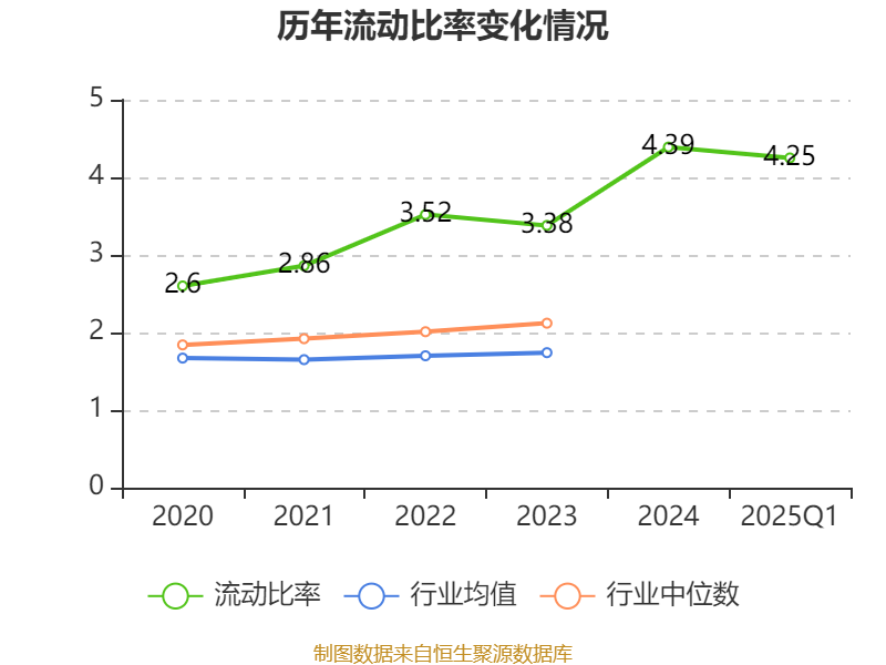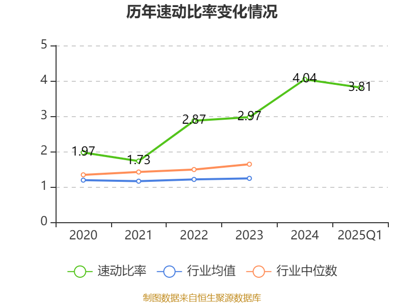 2025年第一季度,公司流动比率为4.25,速动比率为3.81。