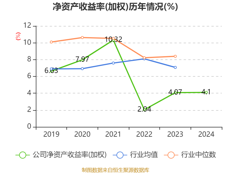 数据显示,2024年公司加权平均净资产收益率为4.1%,较上年同期上升0.03个百分点。公司2024年投入资本回报率为3.79%,较上年同期下降0.06个百分点。