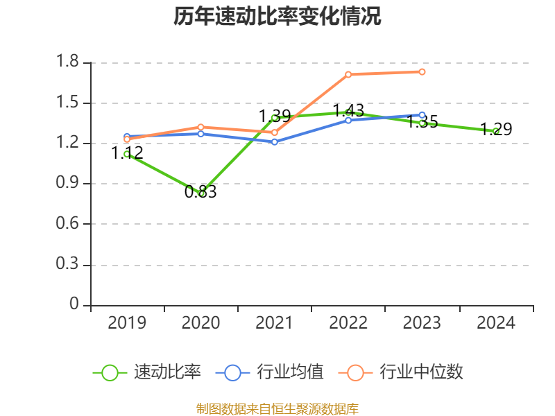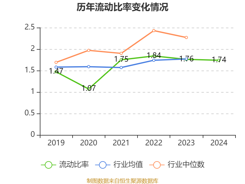 2024年,公司流动比率为1.74,速动比率为1.29。